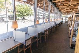 附属図書館のカウンター席 音楽ホール棟内レストランにあるテラス席