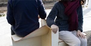 (美専:山木)実技が伴うので、学校で対面授業を受けています。プロダクトデザインは、わかりやすく言ったら、家具とかの立体造形のデザインです。私は例えば公共の場所に置く隣の人との距離が気にならないストレスフリーのベンチや、身体障害者を対象とした片手での調理ができる自助具などを制作してきました。
