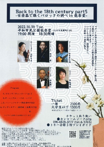 本学非常勤講師によるコンサート「Back to the 18th century part5 - 古楽器で聴くバロックの調べ in 能楽堂 -」が開催されます