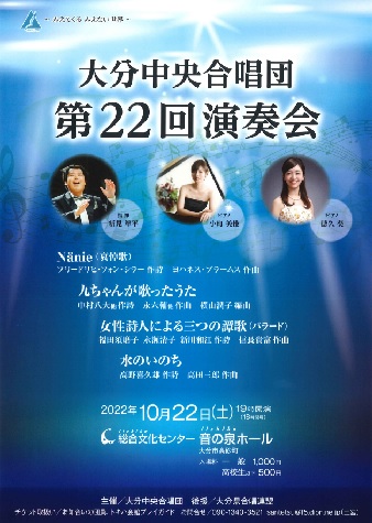 10月22日(土)、「大分中央合唱団 第22回演奏会」が開催されます。