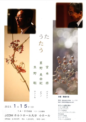 2023年1月15日(日)、J:COMホルトホール大分小ホールにて「うたうたう」が開催されます。