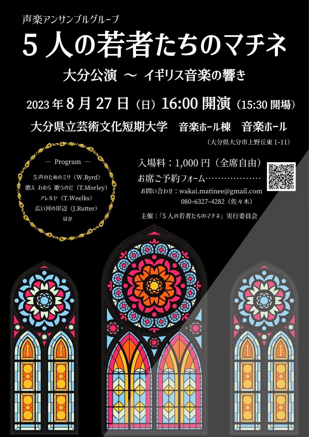 「声楽アンサンブルグループ 5人の若者たちのマチネ 大分公演 ~ イギリス音楽の響き」