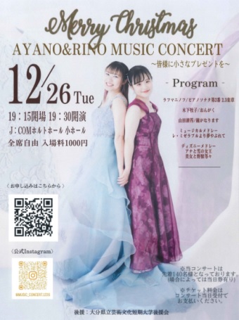 「Merry Christmas AYANO&RINO MUSIC CONCERT」が開催されます。