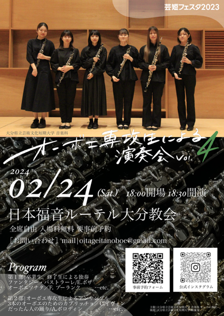 大分県立芸術文化短期大学音楽科オーボエ専攻生による演奏会vol.4が開催されます