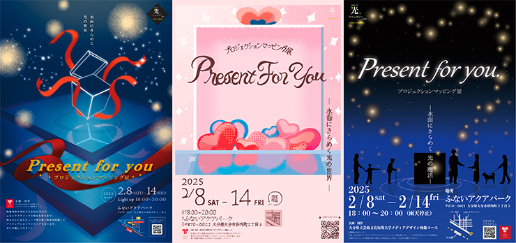 メディアデザイン映像ゼミの短大1年生が2月8日(土)〜14日(金)「おおいた光のファンタジー2024」に参加します。大分市の街中にある公園「ふないアクアパーク」の噴水を、プロジェクションマッピングを用いた映像イルミネーションでバレンタインを彩ります。今年度はVtuber体験もあります。