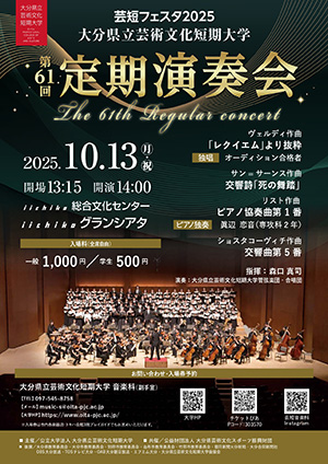 今年も音楽科最大のイベント「第61回定期演奏会」を10月13日(月・祝)にiichikoグランシアタにて開催します。