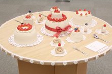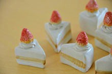 佐々木さんの作品は、まるでホンモノのように美味しそうな陶土で作った“ケーキ”。イチゴがのったものが多いのは、「自分が食べたいと思ったケーキを作っている」からなのだとか。オブジェのほか、小物入れとして使える作品もあります。