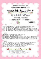 この演奏会は、前期実技試験成績優秀者によるコンサートとなっています。学生たちの日頃の研究・学習の成果を、ぜひご覧ください。