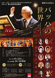 この演奏会は、「第16回大分県民芸術文化祭」の閉幕行事です。小林道夫客員教授による指揮・チェンバロと、独唱、声楽アンサンブル、室内楽で“バッハの世界”を披露します。