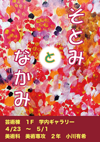 学内ギャラリー(芸術棟1階)では4月23日(木)~ 5月1日(金)、美術科美術専攻2年の小川有希さんによる作品展「そとみとなかみ」を開催しています。
