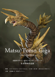 学内ギャラリー(芸術棟1階)では5月16日(土)~5月23日(土)、美術科デザイン専攻メディアデザインコース2年の松本智明さんによる作品展「Matsu Tomo Giga 〜2Dと3Dの世界〜」を開催します。