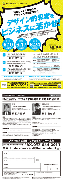 デザイン的思考をビジネスに活かすためのセミナー「地域ビジネスのためのデザイン入門講座2015」が6月にホルトホール大分で開催されます。