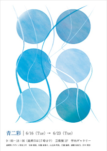 学内ギャラリー(芸術棟1階)では6月16日(火)~ 6月23日(火)、美術科デザイン専攻2年の石神晴菜さん・佐藤奈菜子さん・山之内明里さん・江藤陽香さん・齊藤佑希乃さん・田中理沙さんによる作品展「青二彩」を開催しています。
