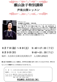 瀬山詠子特別講師の声楽公開レッスンを聴講できます
