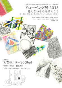 ※作品展「ドローイング展2015」は、午前9時~午後7時まで一般公開しています。学外からお越しの際は、大学事務局にお声掛けください(土・日曜日は守衛室へ)。