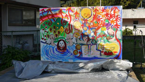 竹楽で描いた壁画の除幕式行います