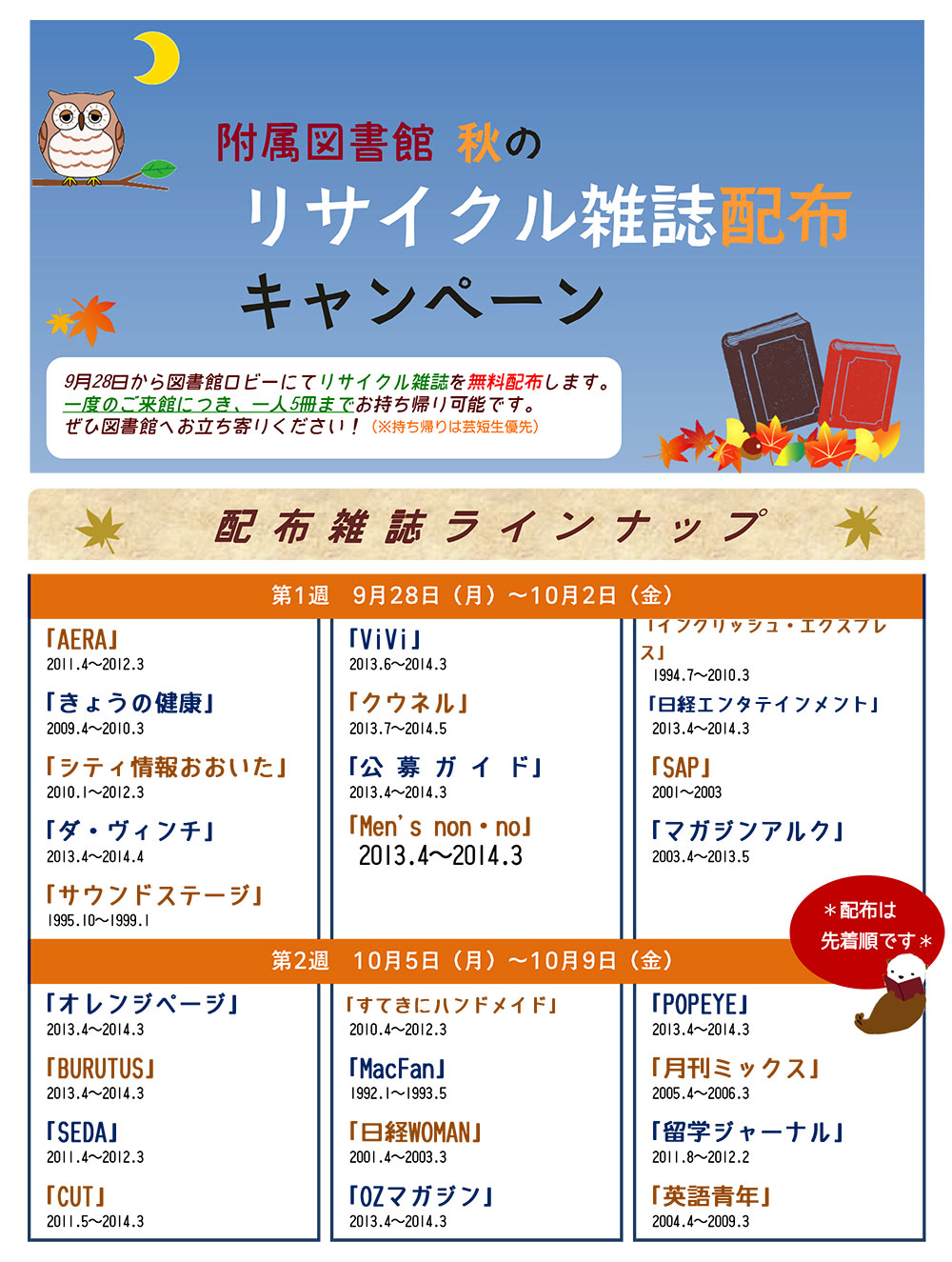 附属図書館 秋のリサイクル雑誌 配布キャンペーン