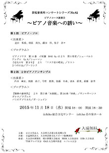 <芸短音楽科コンサートシリーズ№82 ピアノコース演奏会 ~ピアノ音楽への誘い~>
