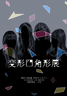 学内ギャラリー(芸術棟1階)では11月24日(火)~ 11月30日(月)、美術科美術専攻2年の学生4名による作品展「変形四角形展」を開催します。