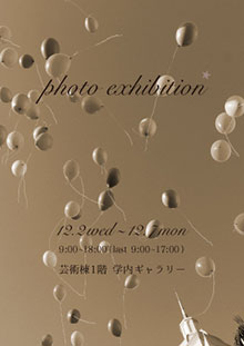 学内ギャラリー(芸術棟1階)では12月2日(水)~ 12月7日(月)、美術科美術専攻2年の学生による作品展「photo exhibition」を開催します。