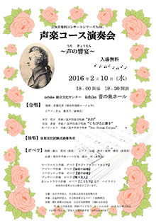 芸短音楽科コンサートシリーズNo.84「声楽コース演奏会 ~声(うた)の響宴~」を2月10日(水)、iichiko総合文化センター音の泉ホールで開催します。