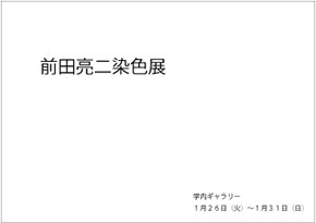 学内ギャラリー(芸術棟1階)では1月26日(火)~ 1月31日(日)、美術科非常勤講師の前田亮二先生による作品展「前田亮二染色展」を開催します。
