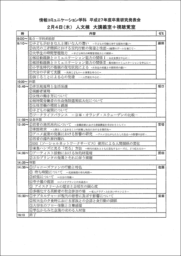 ■情報コミュニケーション学科 平成27年度 卒業研究発表会