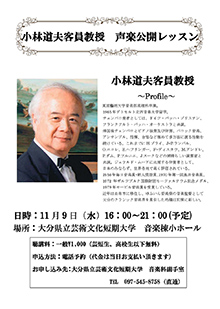 小林道夫客員教授 声楽特別レッスン聴講者募集のお知らせ