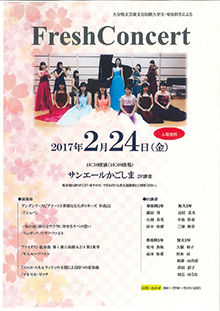 本学音楽科の鹿児島県出身学生による演奏会「Fresh Concert」(フレッシュコンサート)を2月24日(金)、鹿児島市のサンエールかごしまで開催します。