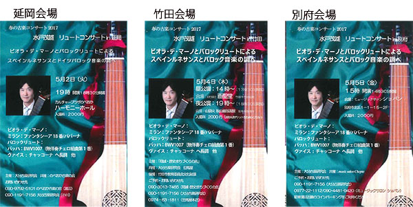 本学音楽科、小川伊作教授が代表を務める「大分古楽研究会」が「春の古楽コンサート2017 水戸茂雄 リュートコンサート~ビオラ・デ・マーノとバロックリュートによるスペインルネサンスとバロック音楽の調べ~」を開催します。