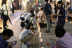 風と光の通り抜けるまち、府内5番街に500個のキャンドルを並べます。