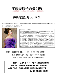 佐藤美枝子客員教授 声楽特別公開レッスンのお知らせ