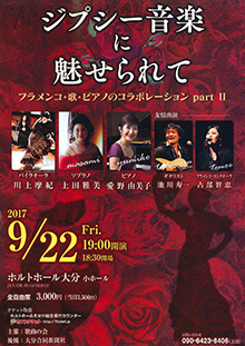 9月22日(金)、ホルトホール大分で開催される「ジプシー音楽に魅せられて ~フラメンコ・歌・ピアノのコラボレーション partⅡ~」に本学音楽科 上田雅美非常勤講師が出演します。