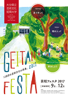 今回は、9月12日(火)からスタートし、2018年2月6日(火)まで続きます。県民のみなさまに広く芸術文化と本学の魅力を知っていただくことを目的とし、展覧会やコンサート、舞台、講演会など多彩なイベントを実施いたします。