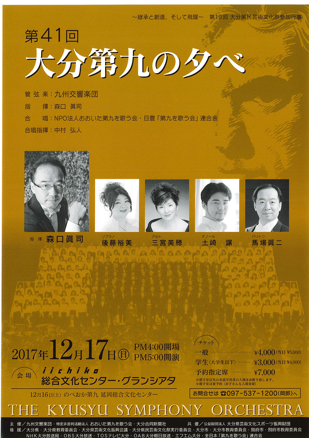 12月17日(日)、第41回 大分第九の夕べに本学音楽科 森口真司教授が指揮者として出演します。