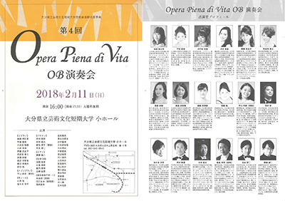 2月11日(日)、本学音楽棟小ホールにてオペラサークル「Opera Piena di Vita」のOBと現役部員による第4回「Opera Piena di Vita OB演奏会」を開催します。