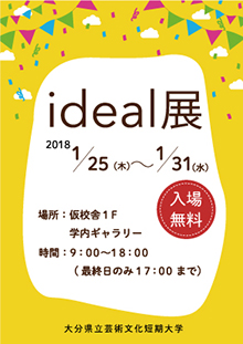 学内ギャラリー(仮校舎1階)では、1月25日(木)~ 1月31日(水)、idealサークルによる作品展「ideal展」を開催します。