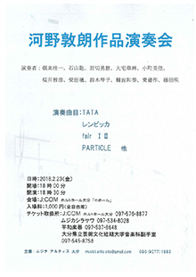 2月23日(金)、「河野敦朗演奏会」をホルトホール大分小ホールにて開催します。