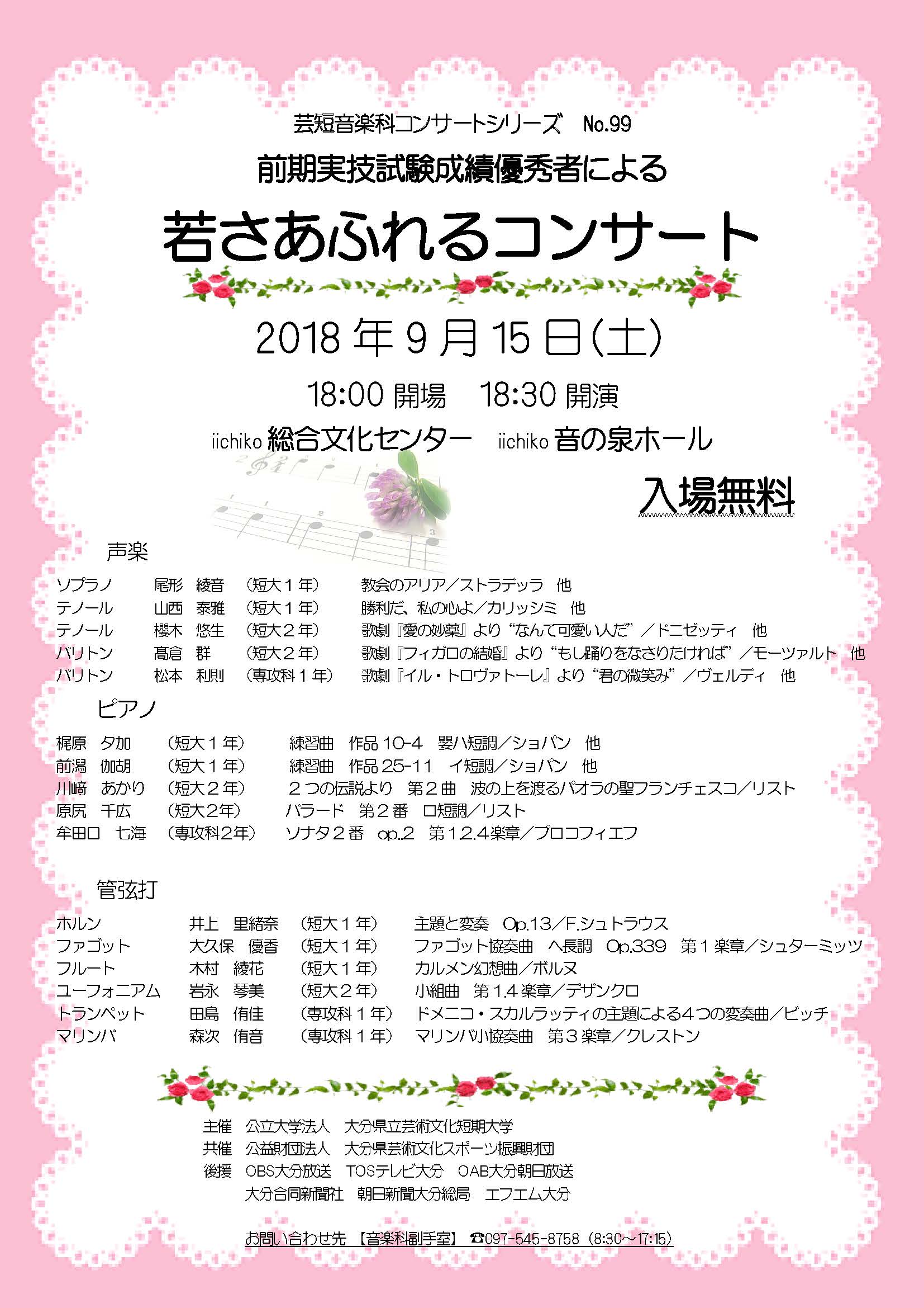 「芸短音楽科コンサートシリーズ No.99 若さあふれるコンサート」を開催します