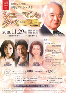 11月29日(木)、iichiko総合文化センターiichiko音の泉ホールにて、学長プロジェクト「シューマンの夕べ」を小林 道夫先生をお迎えし開催します。また、本学音楽科教員 愛甲 久美教授、行天 祥晃准教授、林 満理子准教授が出演します。ぜひ、お越しください。