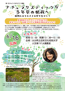 6月16日(日)、本学 人文棟1階 大講義室にて、本学 情報コミュニケーション学科の学生と地域住民と一緒に「第1回 みどりのまちづくり講座」を開催します。