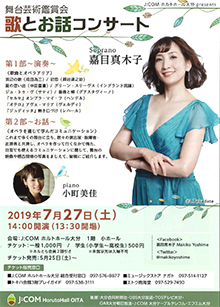7月27日(土)、J:COMホルトホール大分にて、舞台芸術鑑賞会「歌とお話コンサート」が開催されます。本学 演奏員の小町美佳が出演します!皆さま、ぜひお越しください!