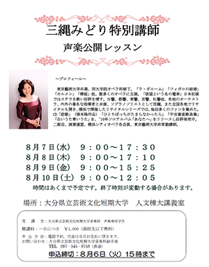 三縄みどり特別講師の声楽公開レッスンを聴講できます