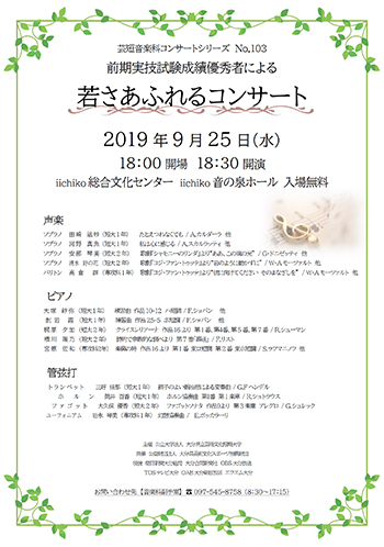 「芸短音楽科コンサートシリーズ No.103 若さあふれるコンサート」を開催します