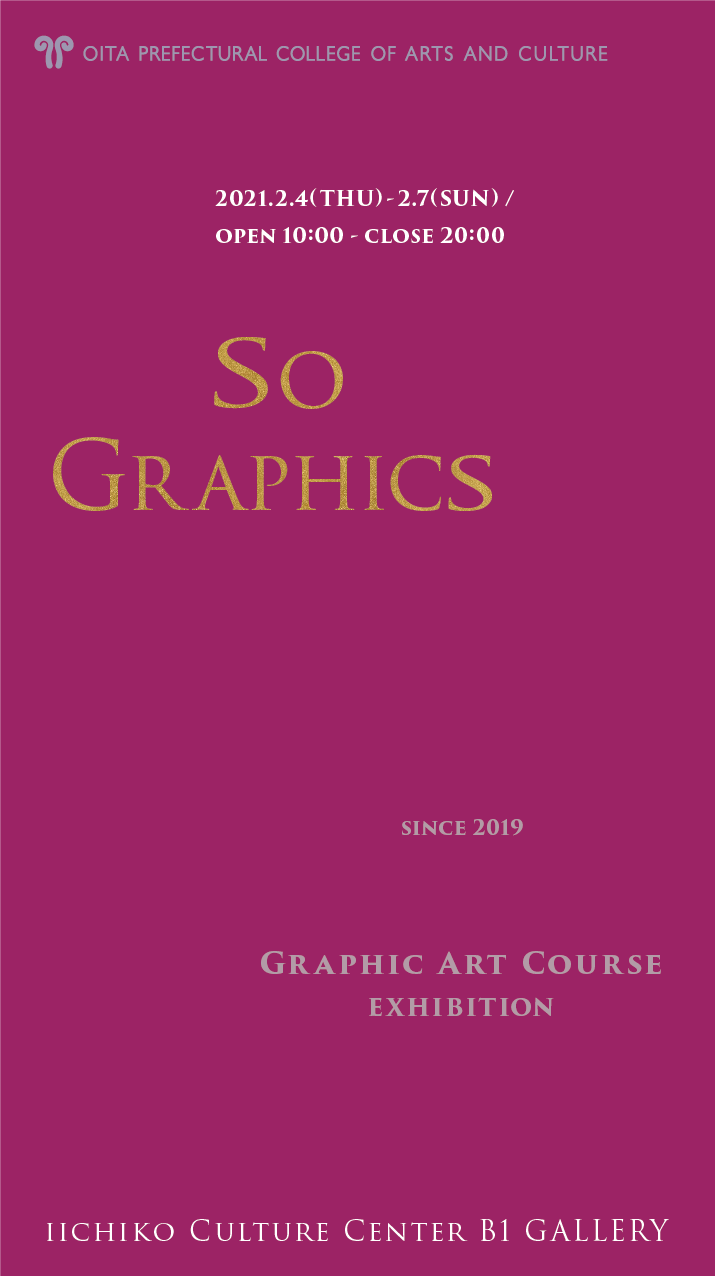 本学美術科 デザイン専攻 グラフィックアートコースの1年生・専攻科生による「So Graphics 2021」を、iichiko総合文化センター B1階 県民ギャラリーにて開催します。