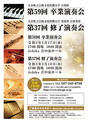 音楽科「第59回 卒業演奏会」、専攻科音楽専攻「第37回修了演奏会」を開催します!!