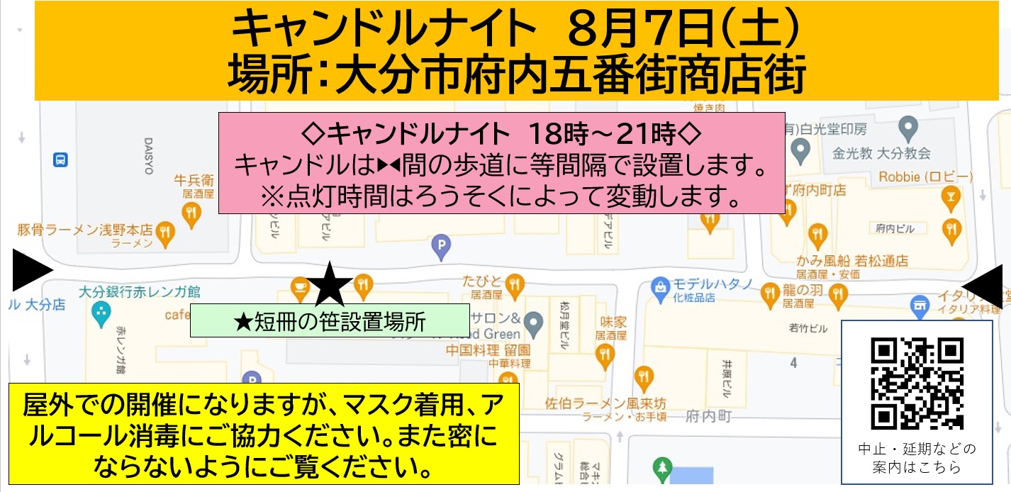 2021年8月7日(土)、府内五番街商店街(大分市府内町)にて「キャンドルナイト」を開催します。