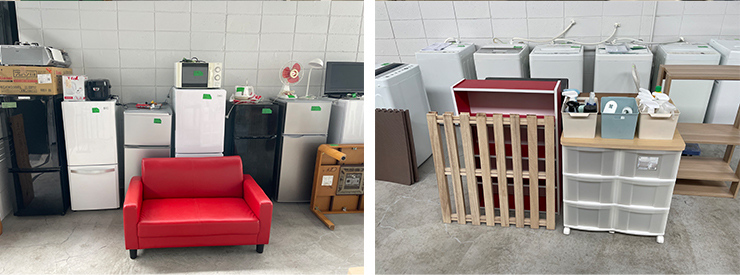 洗濯機・冷蔵庫・ベッド・棚・ソファー・炊飯器・ケトル・電子レンジ・空気清浄機・テーブル・学習机・掃除機・テレビ・食器・雑貨・本 など