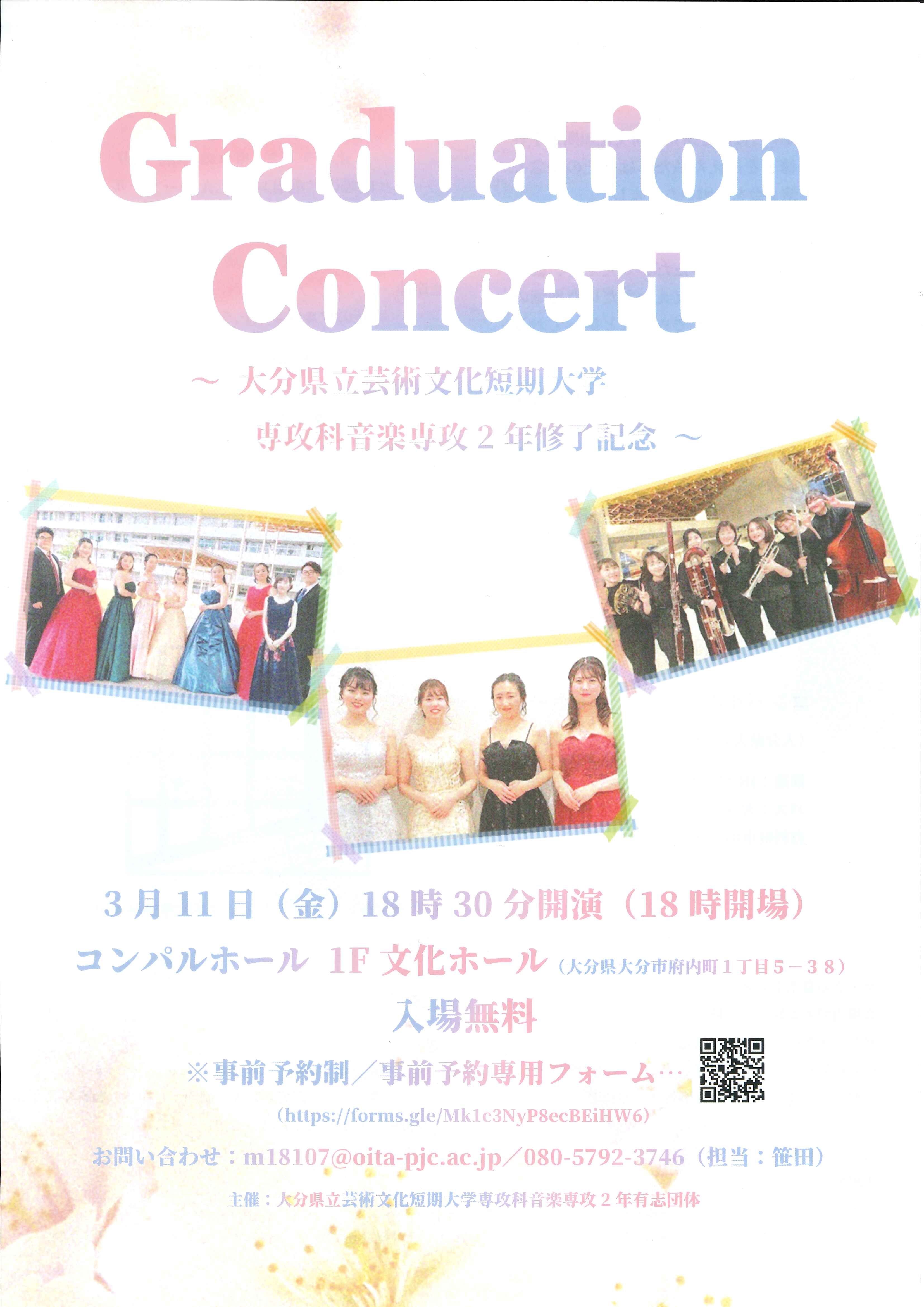 3月11日(金)に、コンパルホール 1F 文化ホールにて、本学専攻科音楽専攻2年修了記念「Graduation Concert」を開催します。