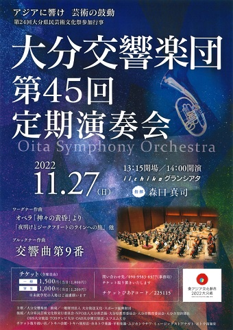 11月27日(日)、iichiko総合文化センターiichikoグランシアタにて、大分交響楽団「第45回 定期演奏会」が開催されます。